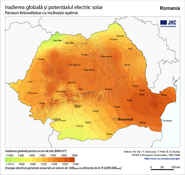 Harta cu potentialul electric solar al Romaniei