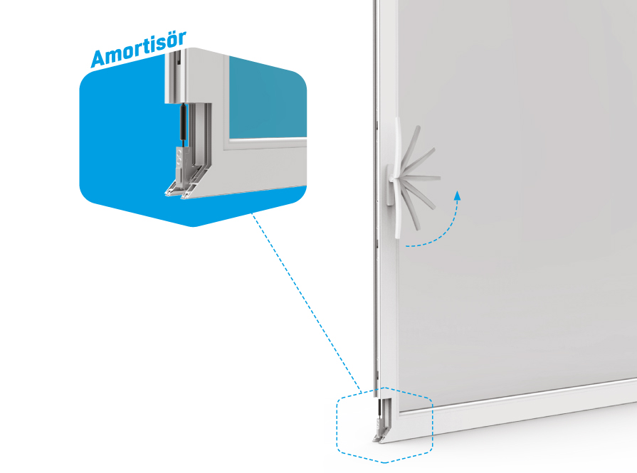 Pentru utilizarea în siguranță a sistemului culisant cu ridicare VORNE, am dezvoltat metoda amortizoarelor. Aspectul patentat al amortizorului previne mișcarea grea a brațului și accidentele care pot apărea din cauza greutății cercevelei în timpul blocării și asigură o utilizare fără probleme…